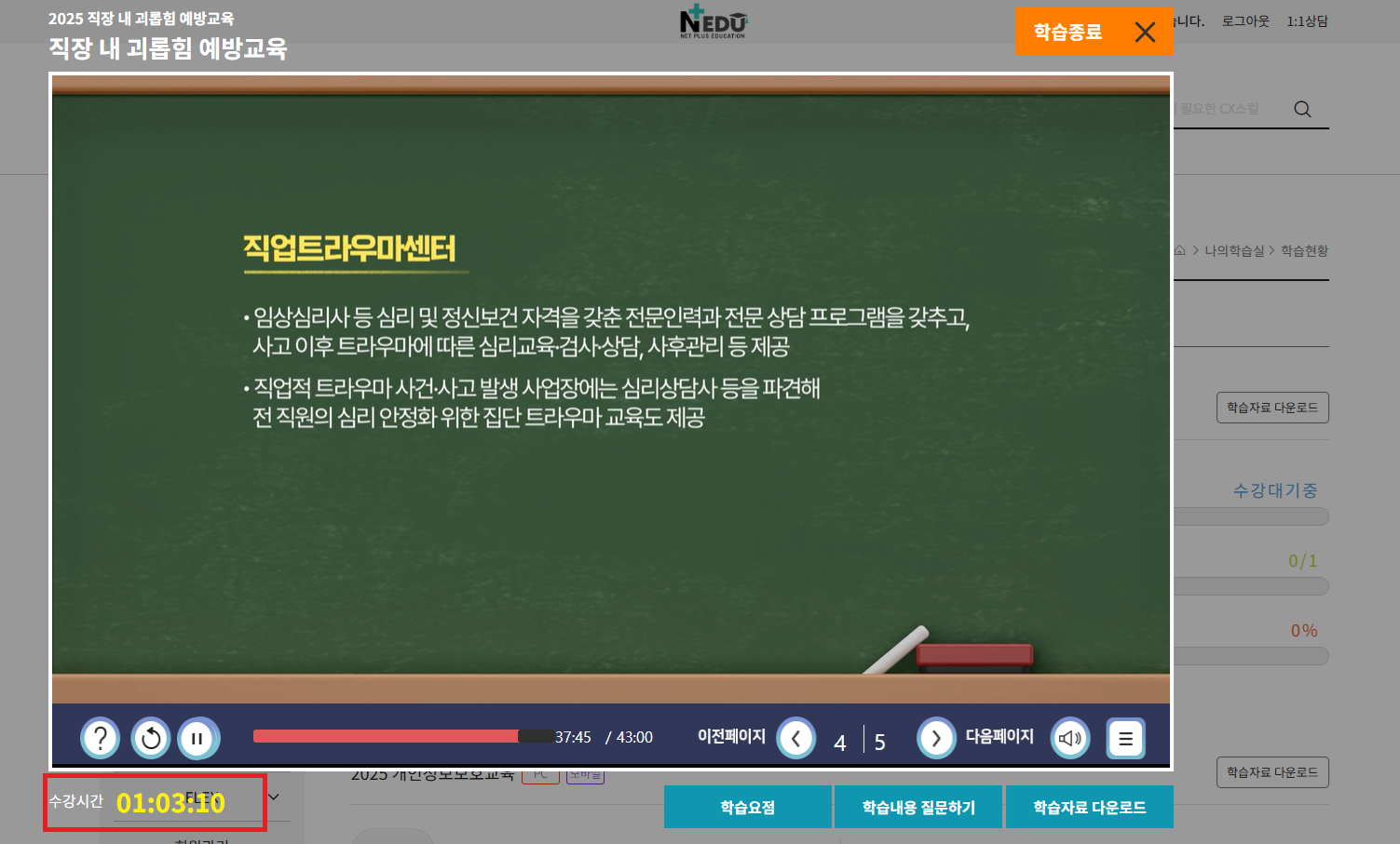 [수강시간] 진도율 적용 수강시간 확인 방법